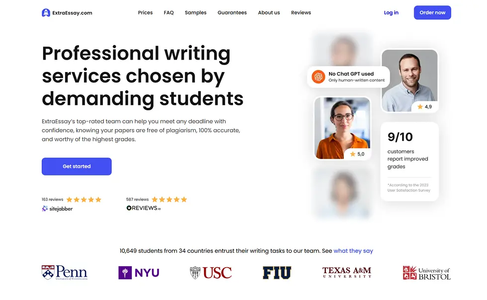 💡 Quick ratings snapshot: Reviews.io gives ExtraEssay 4.8/5 stars (587 reviews), Sitejabber rates it 4.4/5 (163 reviews), but review sites like NoCramming and ScamFighter aren't recommending it. One of us was skeptical going in; another thought the pricing looked reasonable. Here's what we actually found.