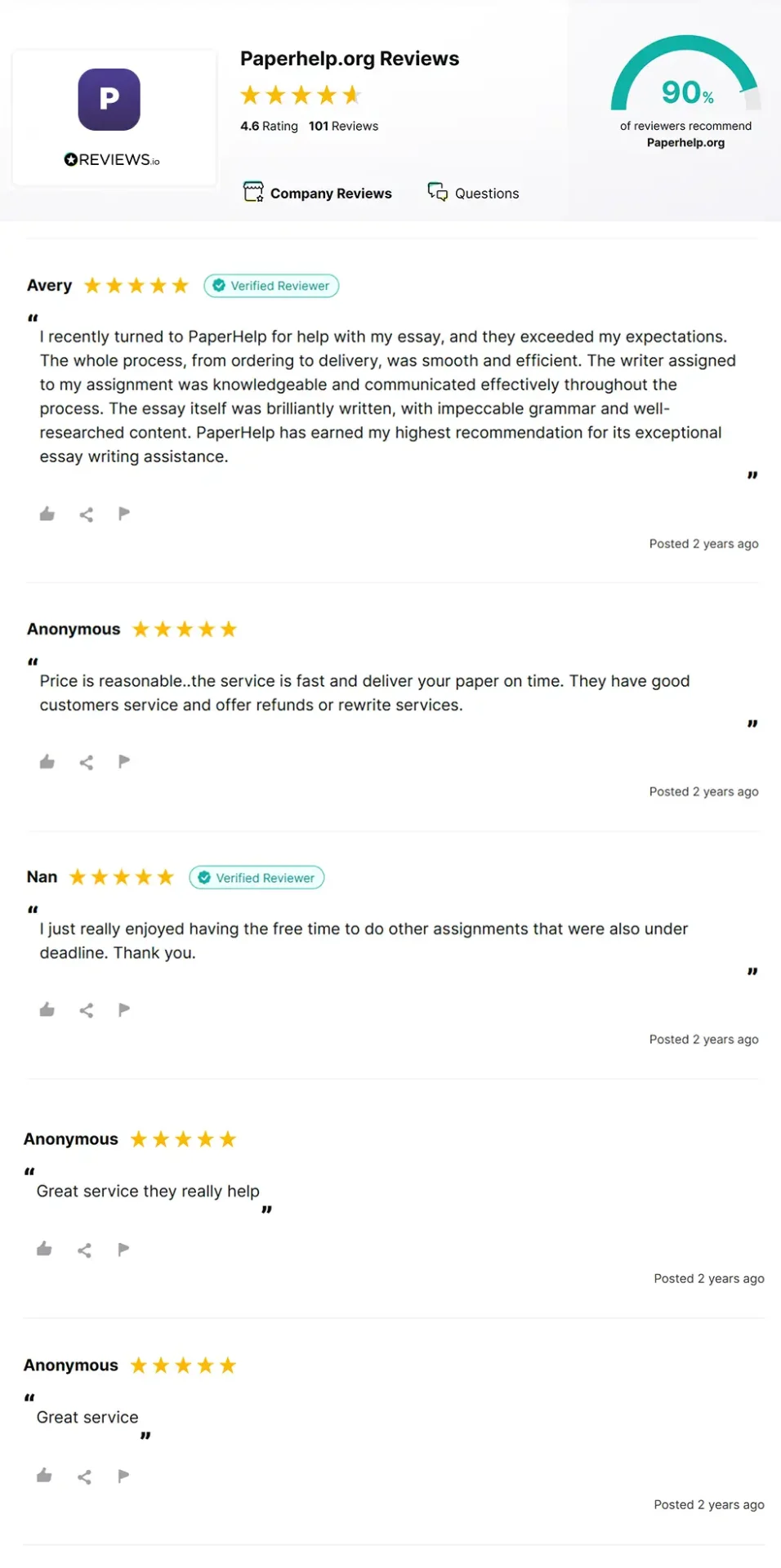 OUR RATING: 4.9/5 — WE CONFIDENTLY RECOMMEND PAPERHELP TO STUDENTS LOOKING FOR QUALITY AND RELIABILITY